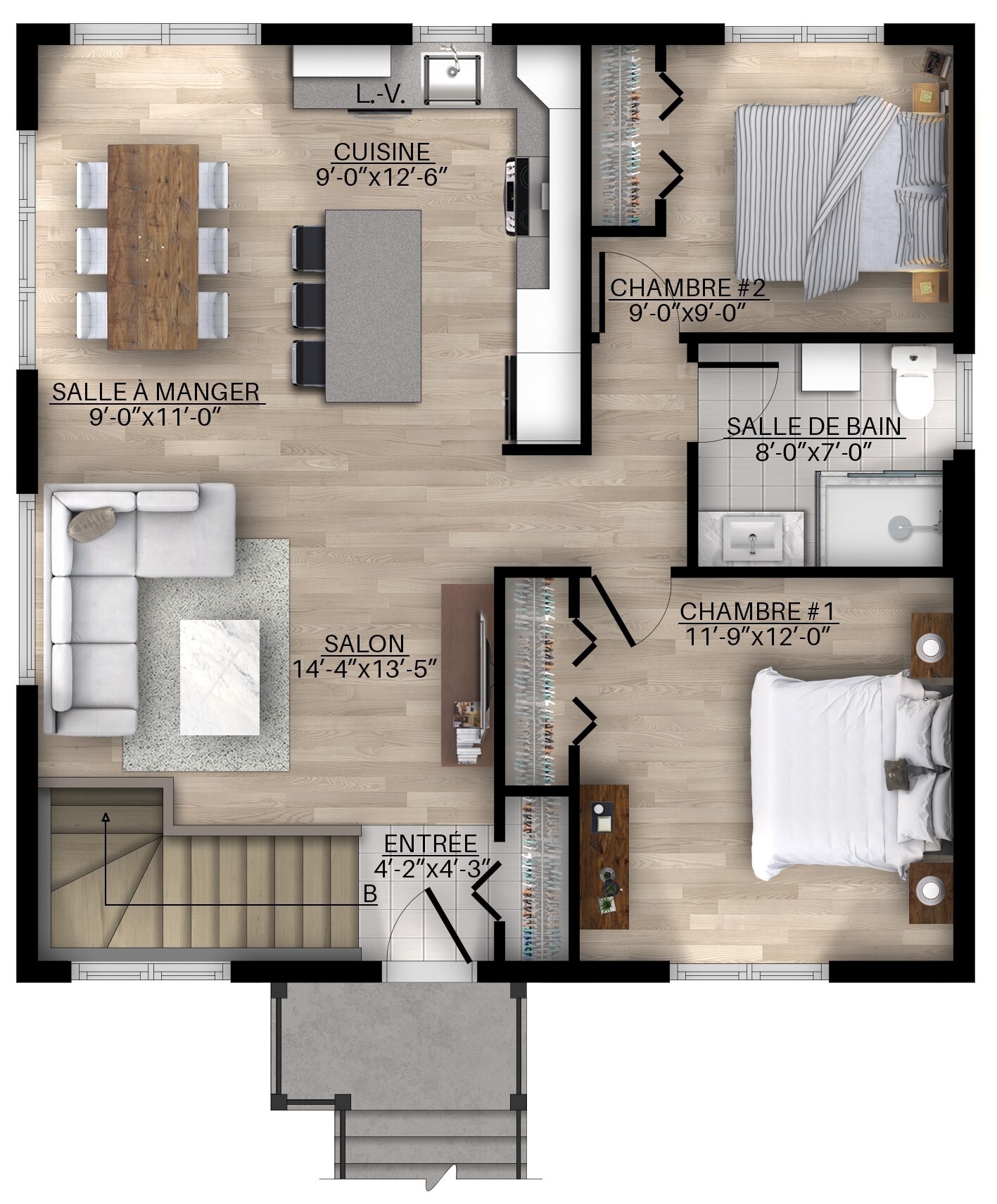 Ground floor : 900 pi2