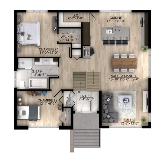 Ground floor : 1 170 pi2