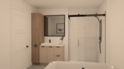 Wood- and ceramic-style click vinyl flooring upstairs
