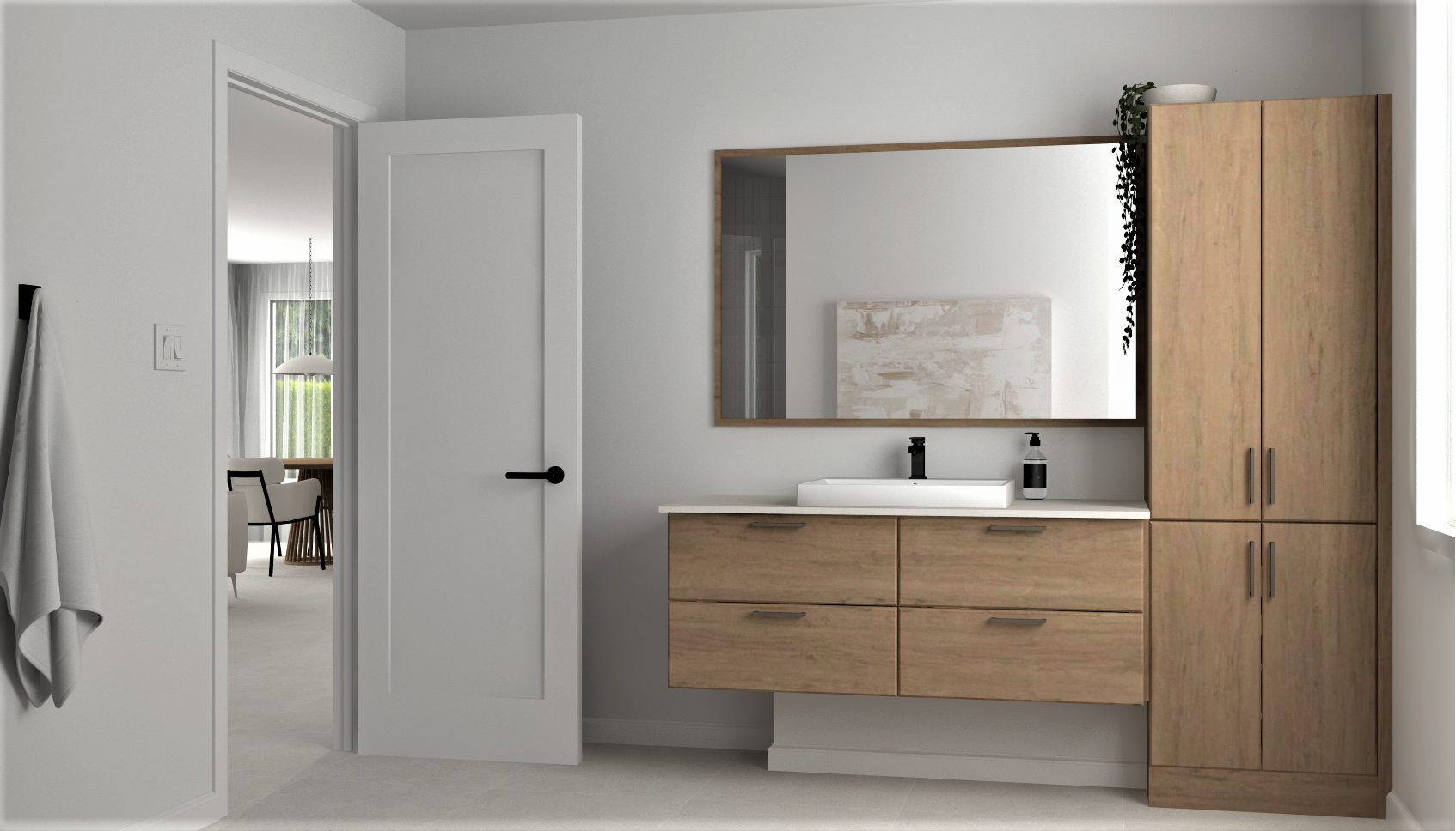 Wood-look click vinyl flooring and ceramic tiles on the ground floor