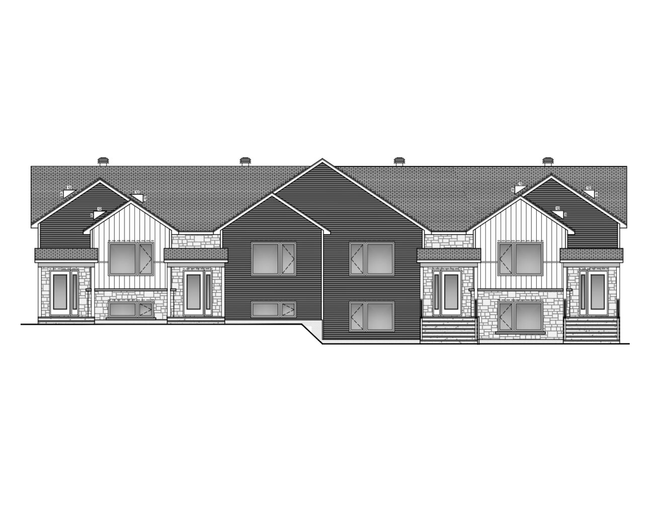 - A maximum of three (3) different types of exterior wall cladding is permitted.