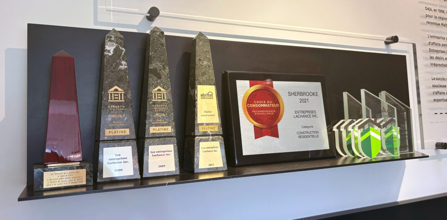 En 2021, nous avons reçu le prix Choix du consommateur dans la catégorie Construction résidentielle – Estrie.