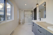 Revêtement de plancher en flottant et céramique à l’étage