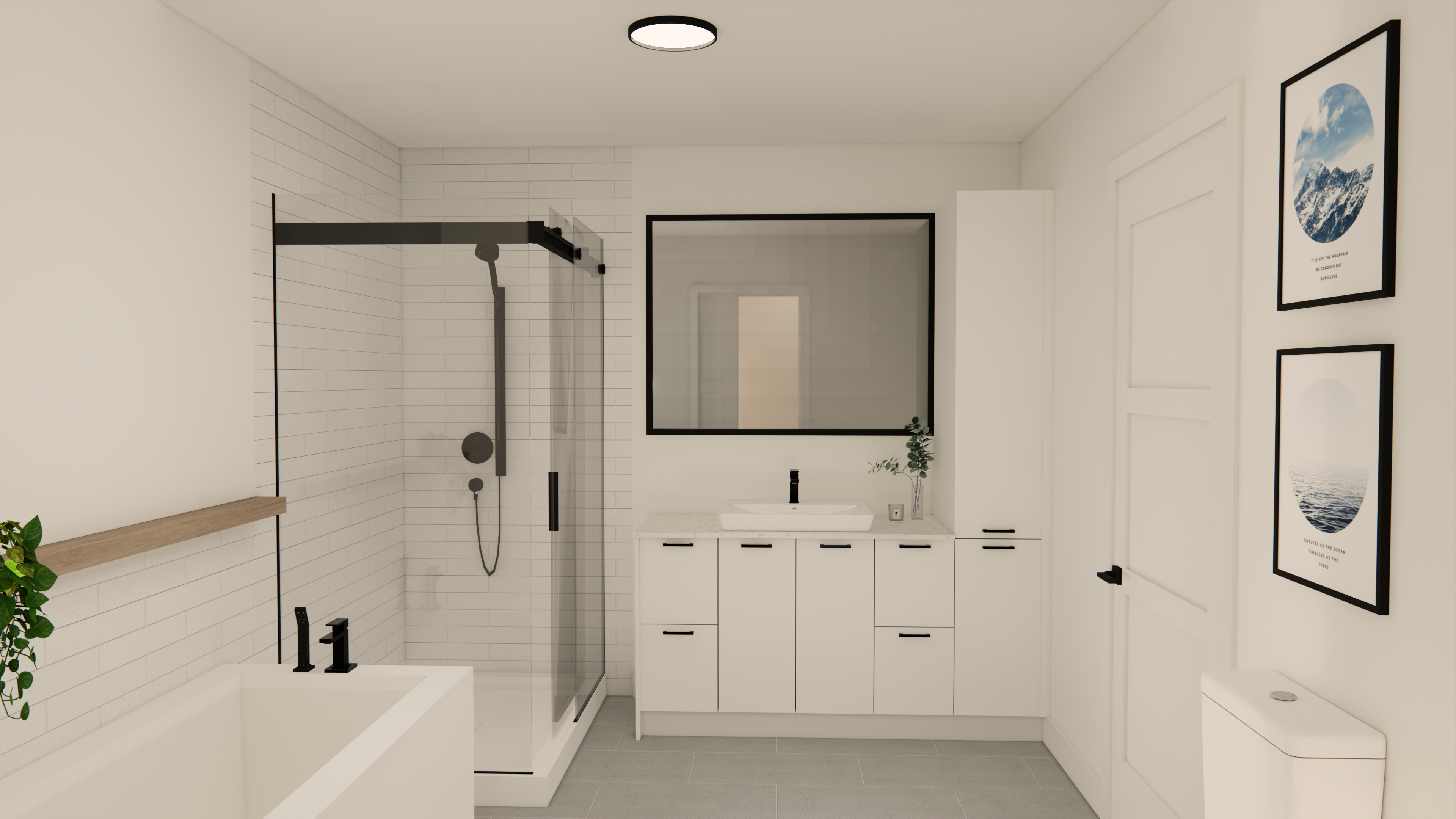 Revêtement de plancher en vinyle clic style bois et céramique au rez-de-chaussée